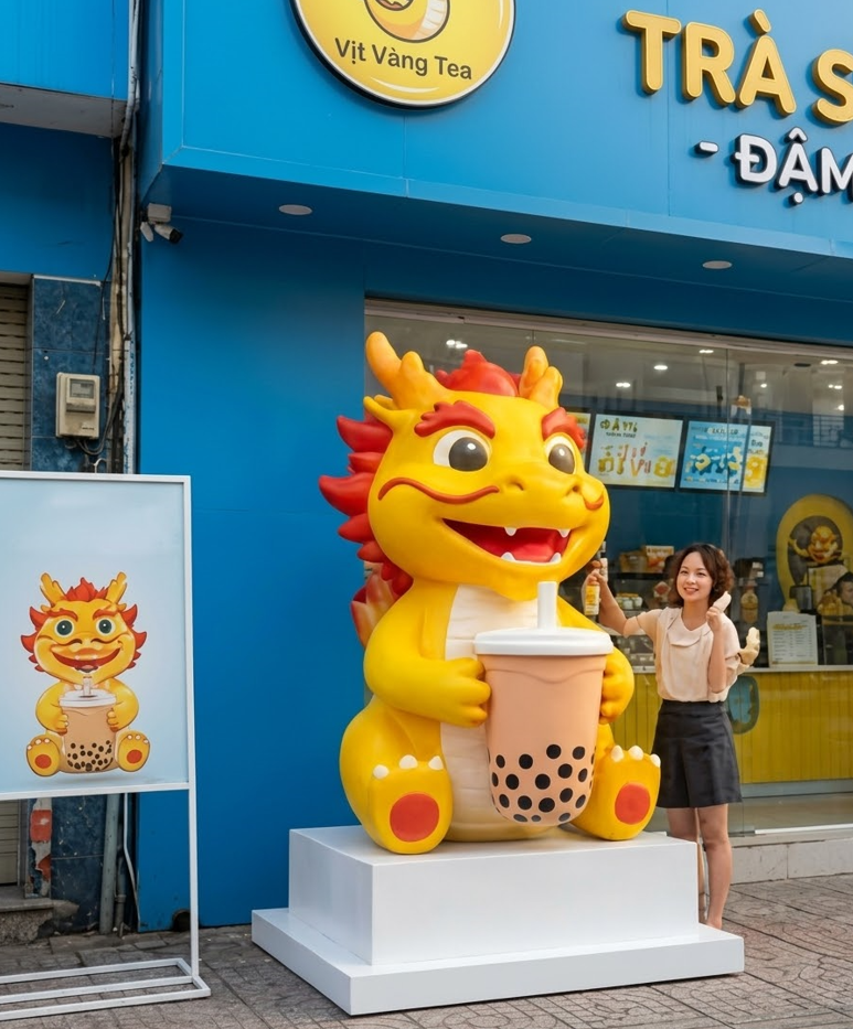 Cá nhân hóa tuyệt đối: In theo đúng hình dáng sản phẩm hoặc Mascot riêng của quán.