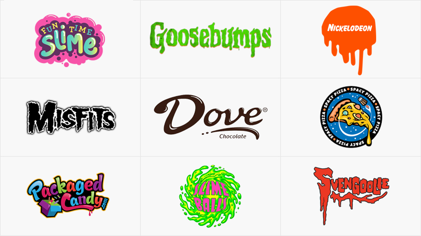 Thiết kế logo dạng này đặc trưng bởi phong cách hoạt hình, các hiệu ứng bắn tung toé, rò rỉ, chảy, Logo này lấy cảm hứng từ chất nhờn, hữu cơ. Logo thường thể hiện vui tươi, vui vẻ.