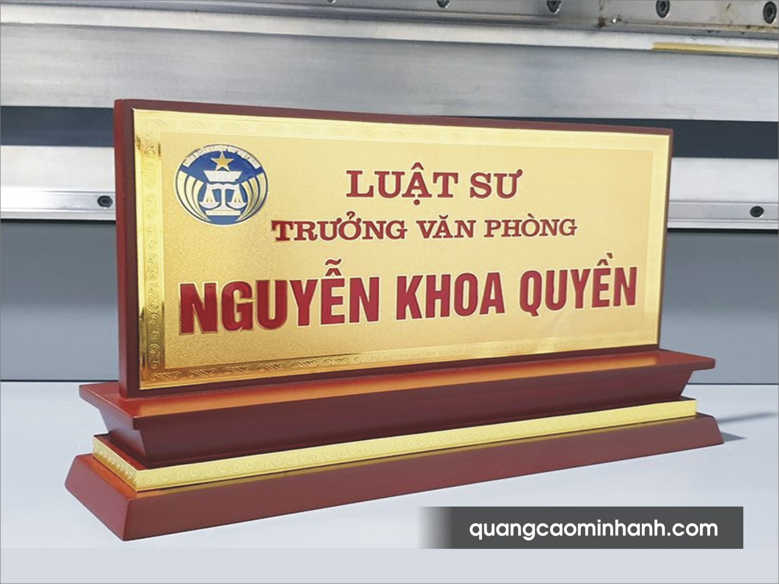 CD03: Biển chức danh đế gỗ mặt đồng |