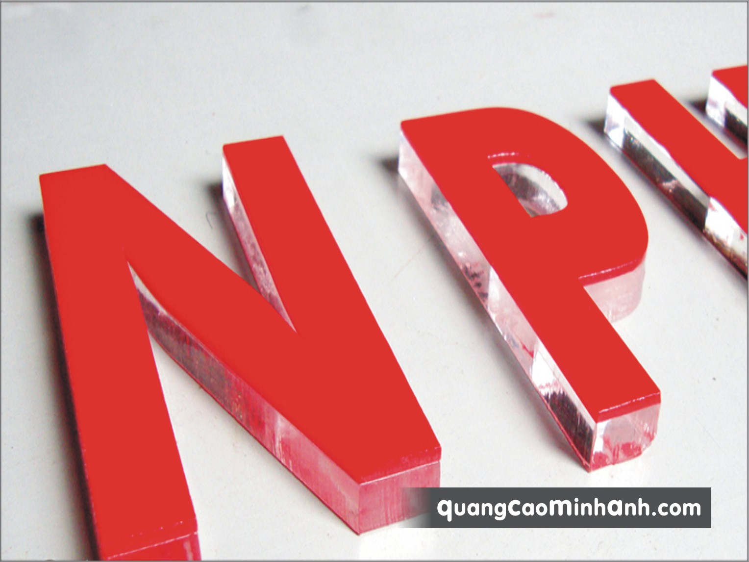 Thường sử dụng với các chữ cao tầm 10cm, để tạo độ nổi cho chữ. Phần đệm nổi có thể dùng mica, gỗ hoặc formec tùy yêu cầu thiết kế.