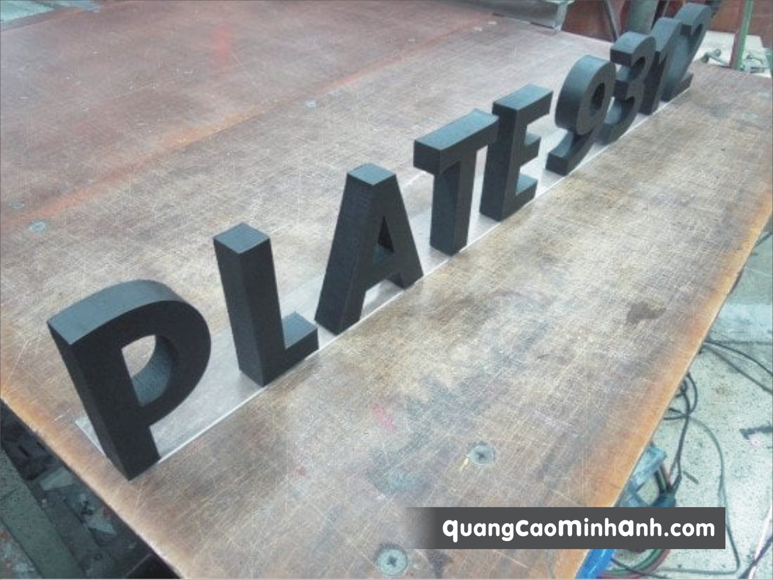 Chất liệu chủ yếu sử dụng là mica (acrylic), inox, đồng, gỗ, tôn...tùy vị trí lắp, mầu sắc và yêu cầu của từng khách hàng. Công nghệ gia công bằng CNC, laser, fiber...đảm bảo độ sắc nét nhất cho sản phẩm.